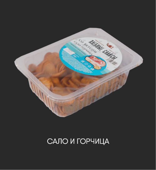 Хлебные слайсы" нашего производства - это тонко нарезанные гренки, приготовленные из хлеба собственного изготовления по уникальной рецептуре с использованием натуральных добавок высшего качества.