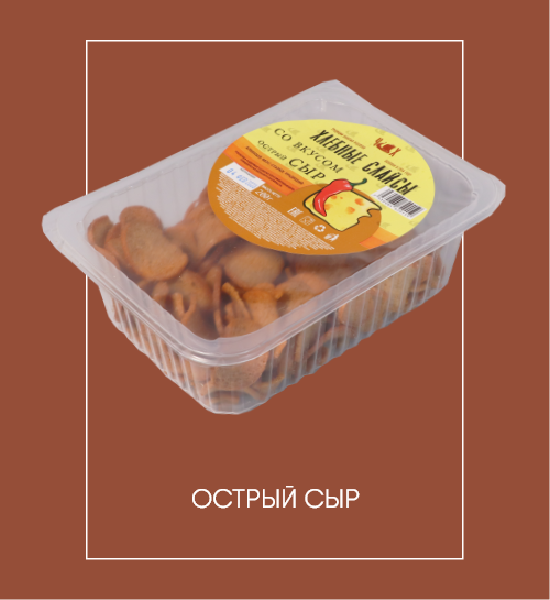 Хлебные слайсы" нашего производства - это тонко нарезанные гренки, приготовленные из хлеба собственного изготовления по уникальной рецептуре с использованием натуральных добавок высшего качества.